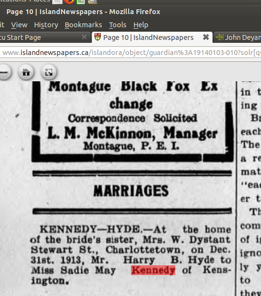 Birth date: abt 1883 Birth place: Prince Edward Island Residence date: 1891 Residence place: Queens, Prince Edward Island, Canada