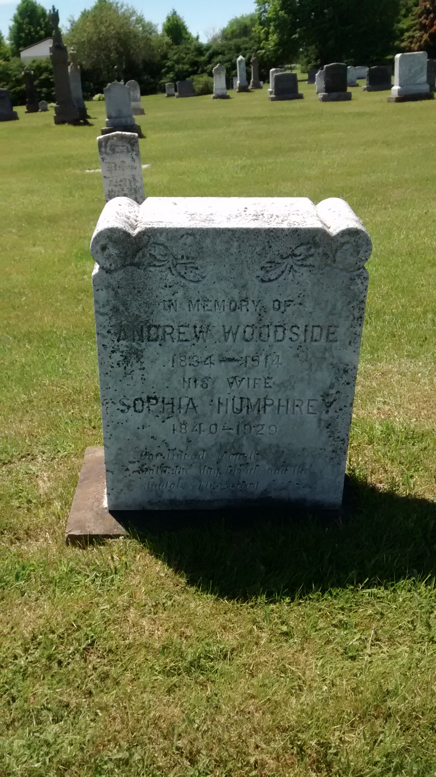 At Clinton, January 9, 1929, Sophia Humphrey, widow of the late Andrew Woodside, in her 89th year