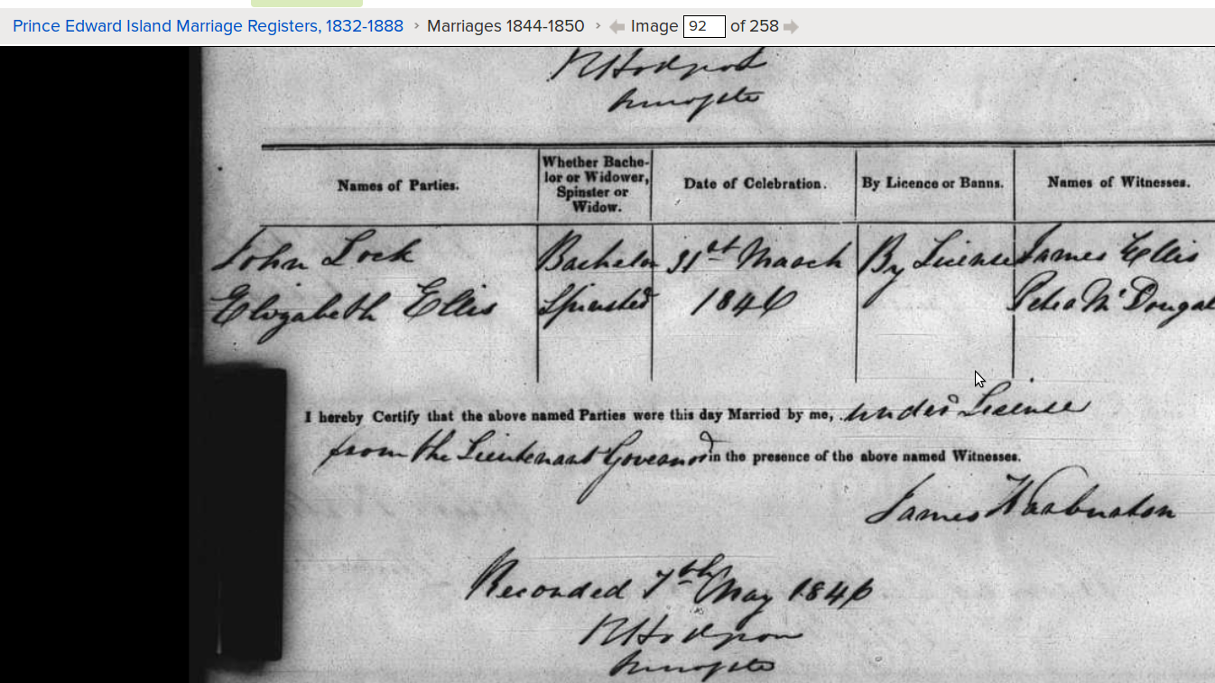 Witnesses at her marriage to John Locke were James Ellis and Peter McDougald.
