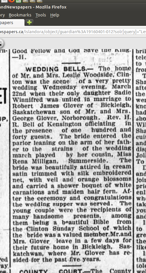 Family of Glover, Robert James and Woodside, Sarah “Sadie” Winnifred |