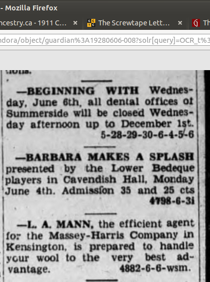 Les Mann was proud of his Scots heritage, and often spoke of his Mann, McFadyen and Johnstone ancestors, and when I started this branch of the family tree I stumbled on names that I remembered him talking about, like the Beer and McFadyen families and St. Paul's Church in Charlottetown.