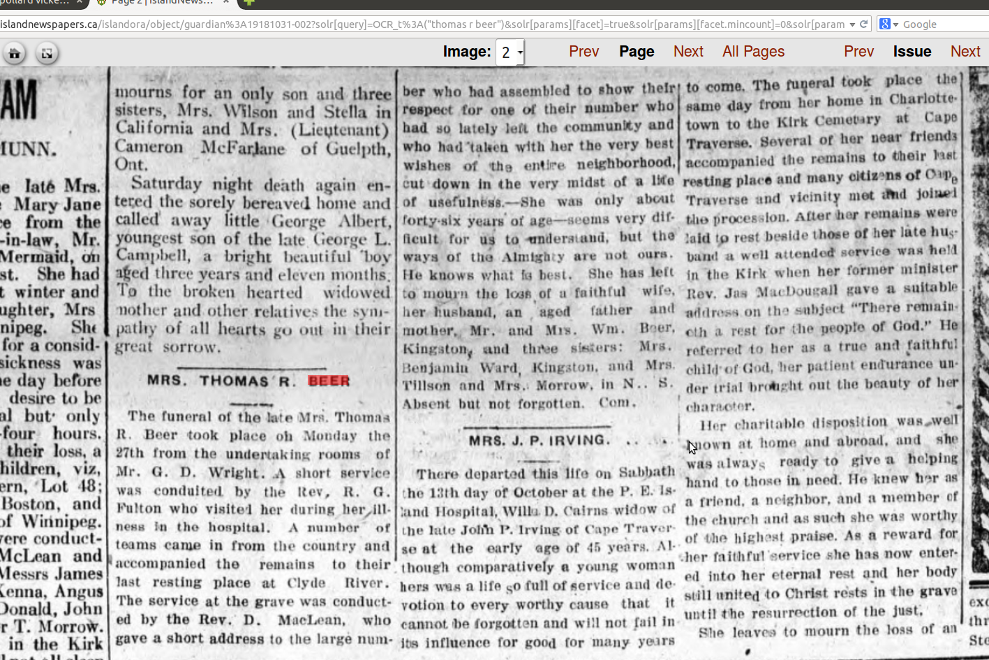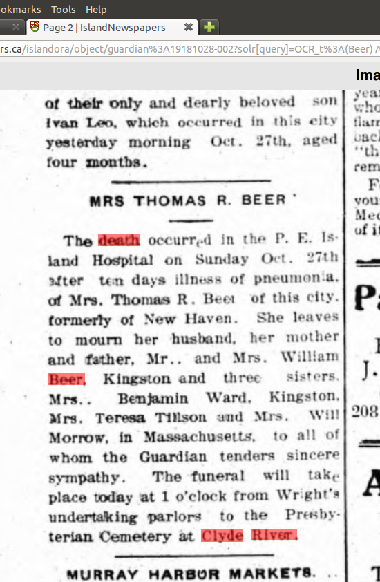 | Death | October 27, 1918 | Charlottetown, Queens County, Prince Edward Island, Canada | d. in hospital | |