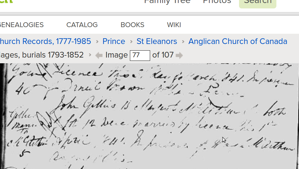 She married John Gillies on April 1, 1841, in the Church of England in St. Eleanors. Witnesses were Hugh McArthur and Agnes Ellis. In the 1861 and the 1881 census, the family was Roman Catholic.