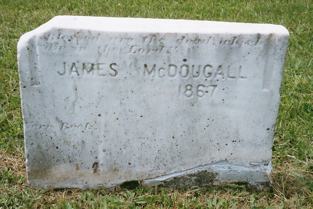 Small gravestone for James McDougall near the Dyment and Mcdougall graves from this family, date could be 1867