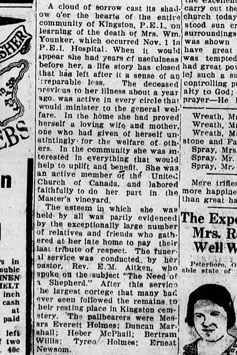 | Death | November 1, 1927 | Charlottetown, Queens County, Prince Edward Island, Canada | not in 1928 Cummins map of Lot 31 | |
