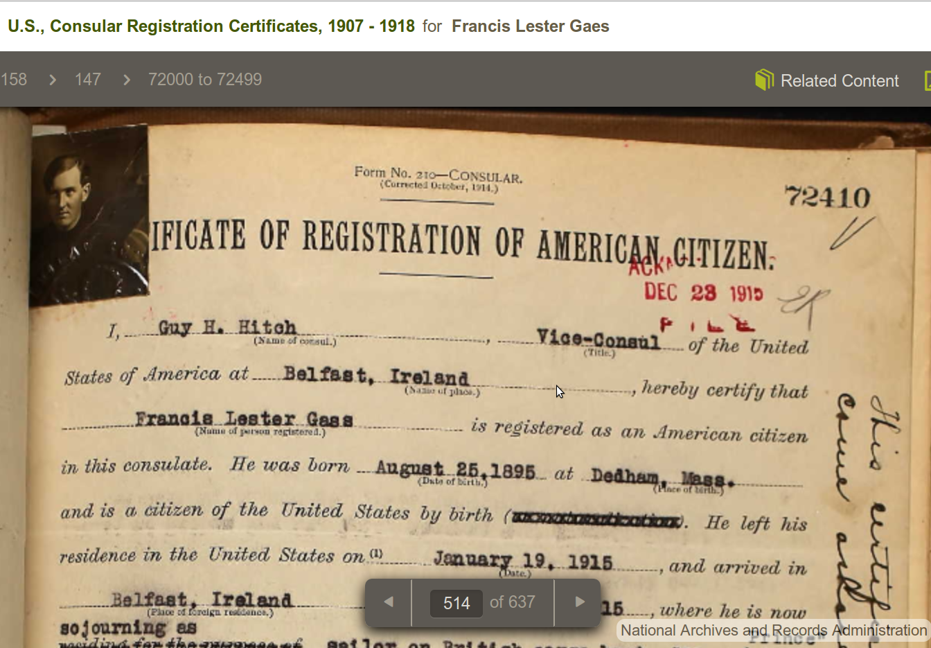 | Gass, Francis Lester | August 25, 1895 | February 1970 | ||