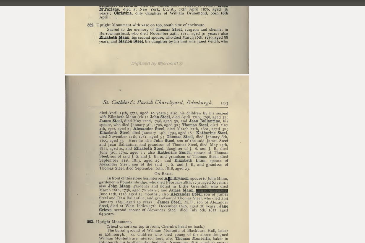 James' son William named a daughter Amelia, which might suggest a connection to Amelia Mann, daughter of John, who married in St. Cuthbert's a few years before James and Hannah.