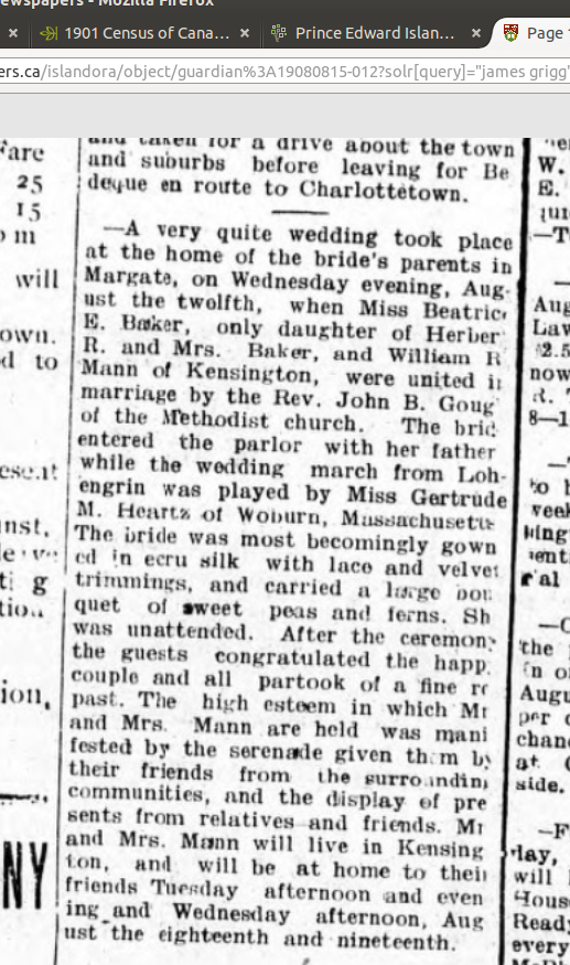 Birth date: abt 1887 Birth place: Prince Edward Island Residence date: 1891 Residence place: Prince, Prince Edward Island, Canada