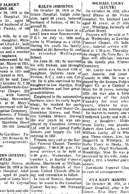 Death: 30 October 1978 (30 Oct 1978) - Winnipeg, Manitoba, Canada