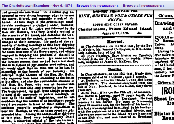 | Marriage | October 27, 1871 | Prince Edward Island, Canada | ||