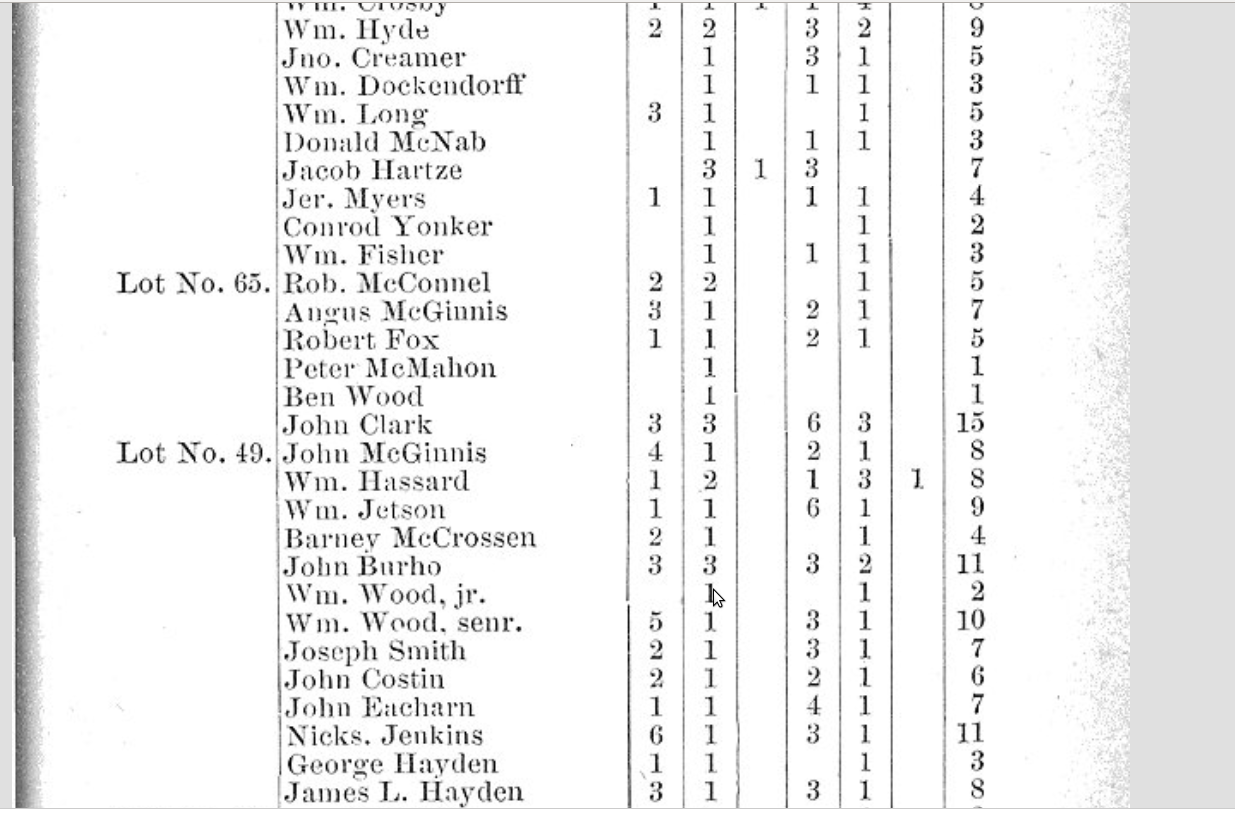 All of their children must have been married, died or left the Island by 1841. Joseph Smith in Lot 49 was a farmer over age 60 in the 1841 census. One person was born in England, and another was born in another British colony.