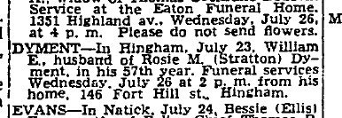 Daughter Evelyn M Dyment F 9 Massachusetts