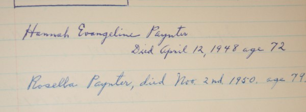 | Paynter, Hannah Evangeline Eva | May 22, 1876 | April 12, 1948 |