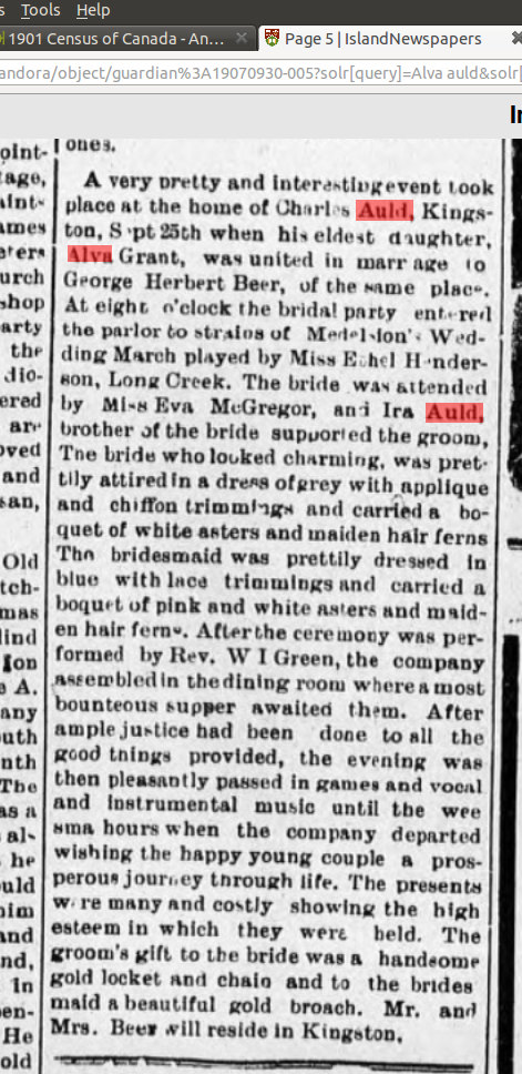 Birth date: abt 1882 Birth place: Prince Edward Island Residence date: 1891 Residence place: Queens, Prince Edward Island, Canada